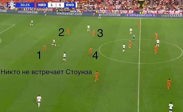 Джон Стоунз решил пробежаться с мячом, четверо нидерландцев на чужой половине – никто не пошел на Стоунза, просто ждали, когда он их отрежет.