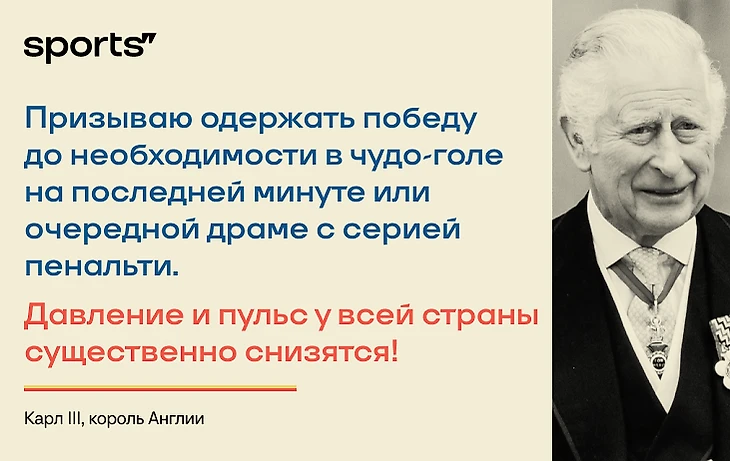 Карлу III, между прочим, 75 лет. И его можно понять: в плей-офф Англия спасает/забирает матчи строго на последних минутах или в серии пенальти.