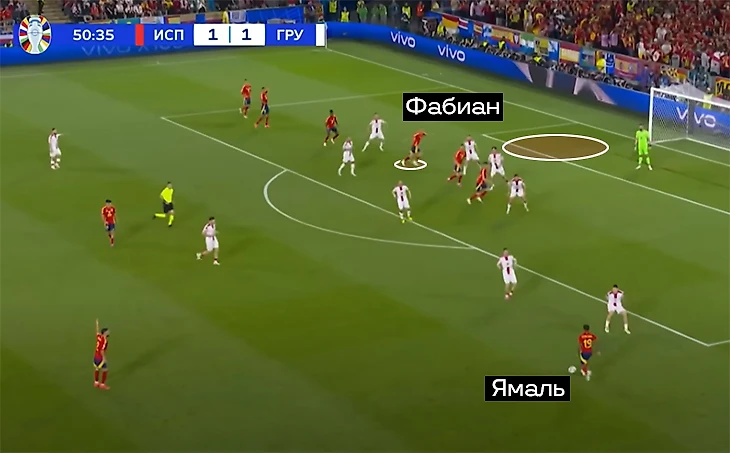 Такие рывки вторым темпом стали оружием Фабиана на Евро. Использует и в «ПСЖ», но там не так выделяется: реже подключается к атаке, а с Луисом Энрике сильнее задействован на первых стадиях продвижения. В сборной Испании дают больше свободы.