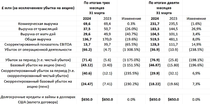 Компания Manchester United Plc отчиталась о результатах третьего квартала 2024 финансового года.
