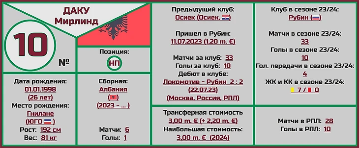 Во-первых, есть лучший снайпер команды прошлого сезона Мирлинд Даку (10 голов), поигравший, кстати, на недавнем Евро за сборную Албании (и несколько оскандалившийся там).