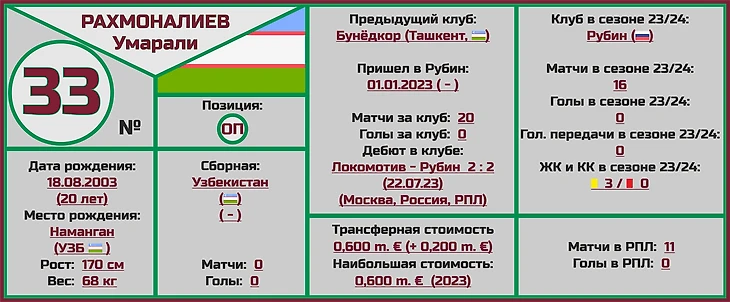 А вот на третью позицию выбор сейчас всего лишь между двумя игроками - Егор Тесленко и Рустамжон Ашурматов.