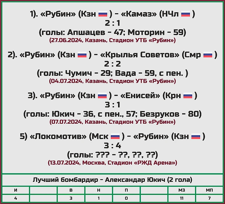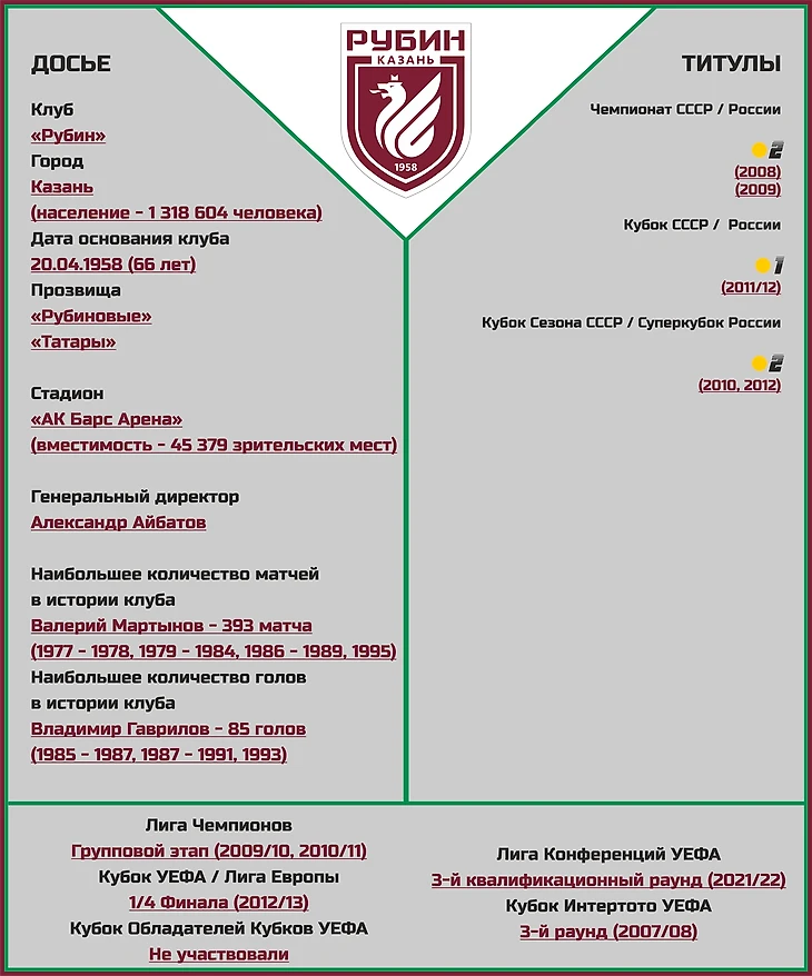 Статистическое превью ФК «Рубин» от блога «Футбольные Чукарички»