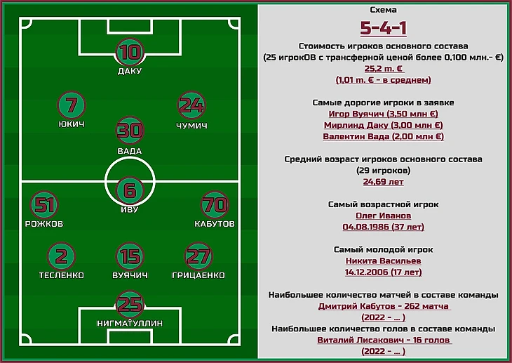 На флангах номинально пока есть только два игрока - Илья Рожков справа и Дмитрий Кабутов слева, так что 1-2 усиления до закрытия трансферного окна ждать нужно, но возможно, клуб будет просто использовать здесь более атакующих игроков (Руслан Безруков, Даниил Кузнецов, Никола Чумич, Александр Ломовицкий).