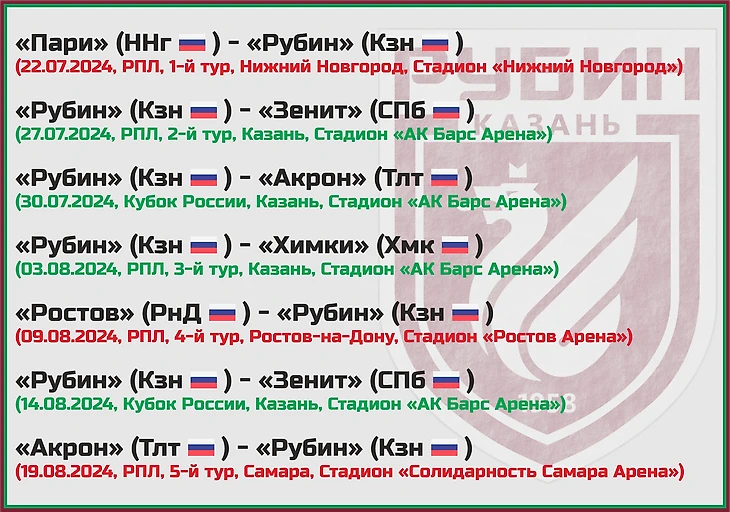 Понятное дело, что помимо этого «Рубин будет принимать во 2-м туре «Зенит», а в 4-м на выезде сыграет с крепким «Ростовом» Валерия Карпина, но все же у большинства других команд начало сезона на бумаге выглядит куда более сложно.