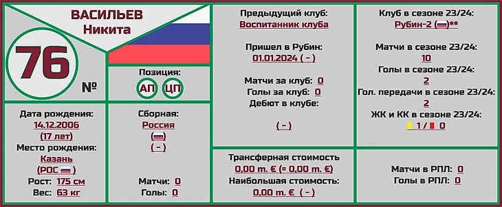 В целом, клуб из столицы Татарстана может рассчитывать как минимум на повторение прошлогоднего результата, для этого у команды все есть, а вот найдутся ли силы и возможности подняться выше покажет только сезон.