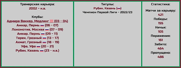 Стоит отметить, что выигранный два года назад трофей стал всего лишь первым значимым титулом в более чем 20-летней тренерской карьере Рашида Рахимова, а прошлый сезон с казанцами он завершил в середине турнирной таблицы Премьер-Лиги (на 8-й позиции).