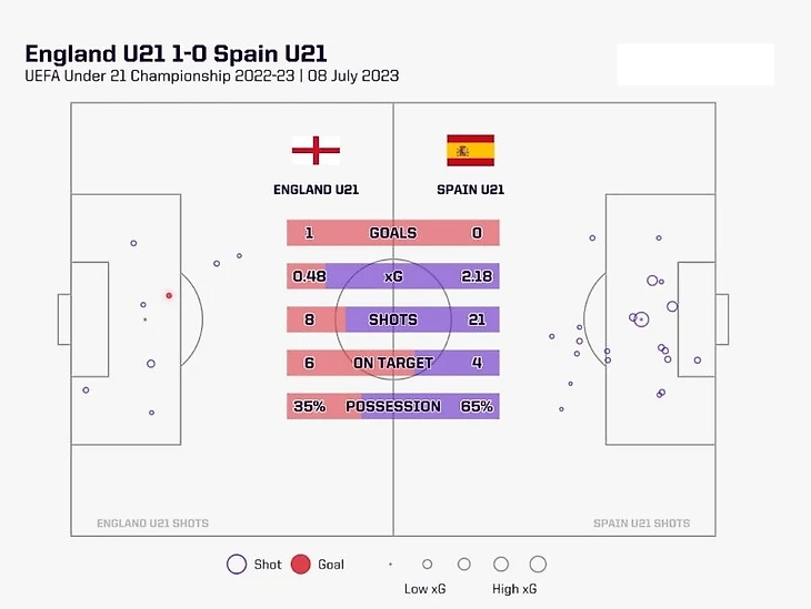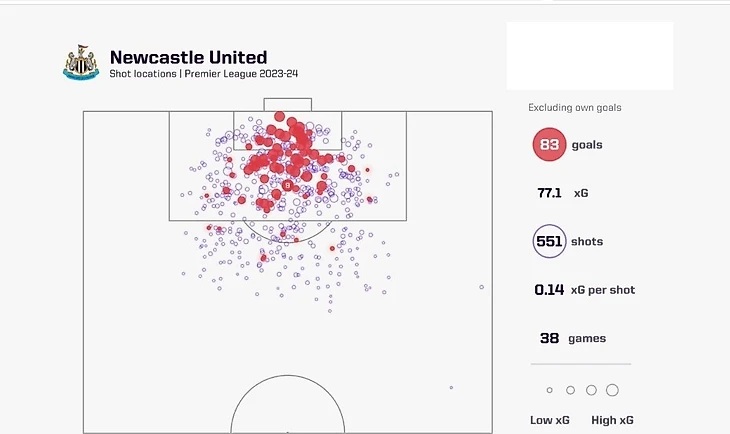 «Три льва» также изо всех сил пытались создать моменты на Евро-2024: девять команд турнира имеют более высокий тотал xG, несмотря на то, что только Испания сыграла столько же матчей, сколько они. В 2022-23 годах только «Ман Сити» и «Брайтон» набрали больше очков в Премьер–лиге, чем «Ньюкасл», в то время как только «Сити», «Ливерпуль» и «Арсенал» имели больше очков – и действительно, забили больше голов - в прошлом сезоне.