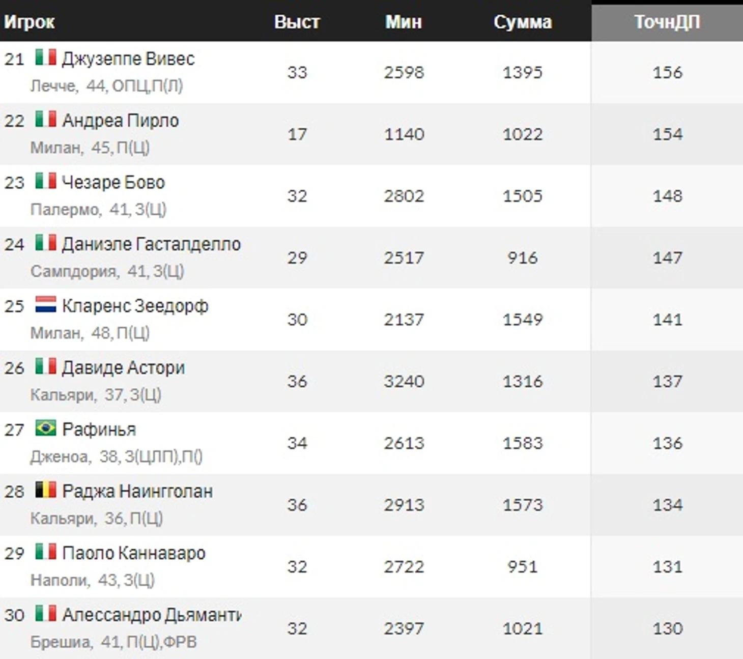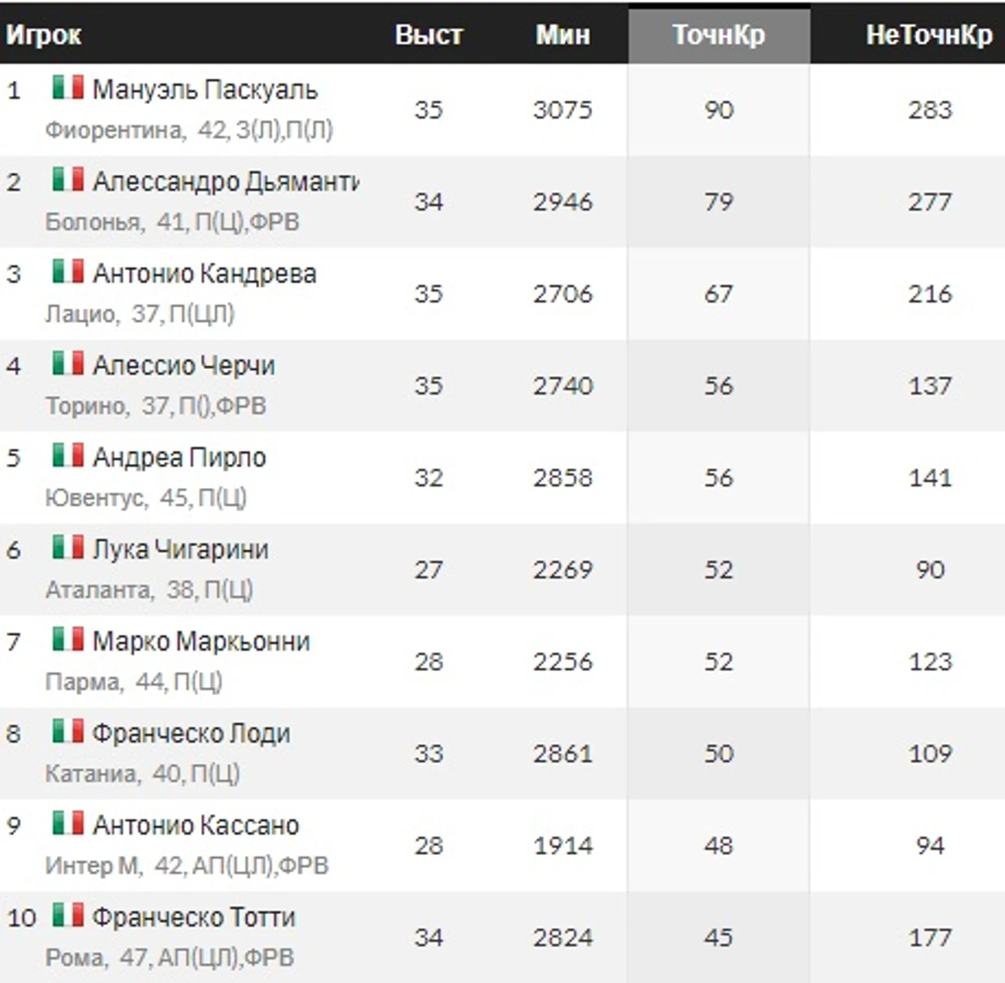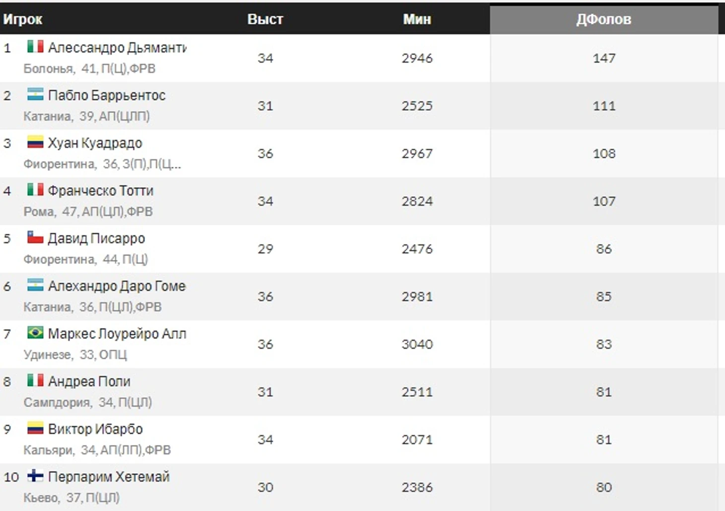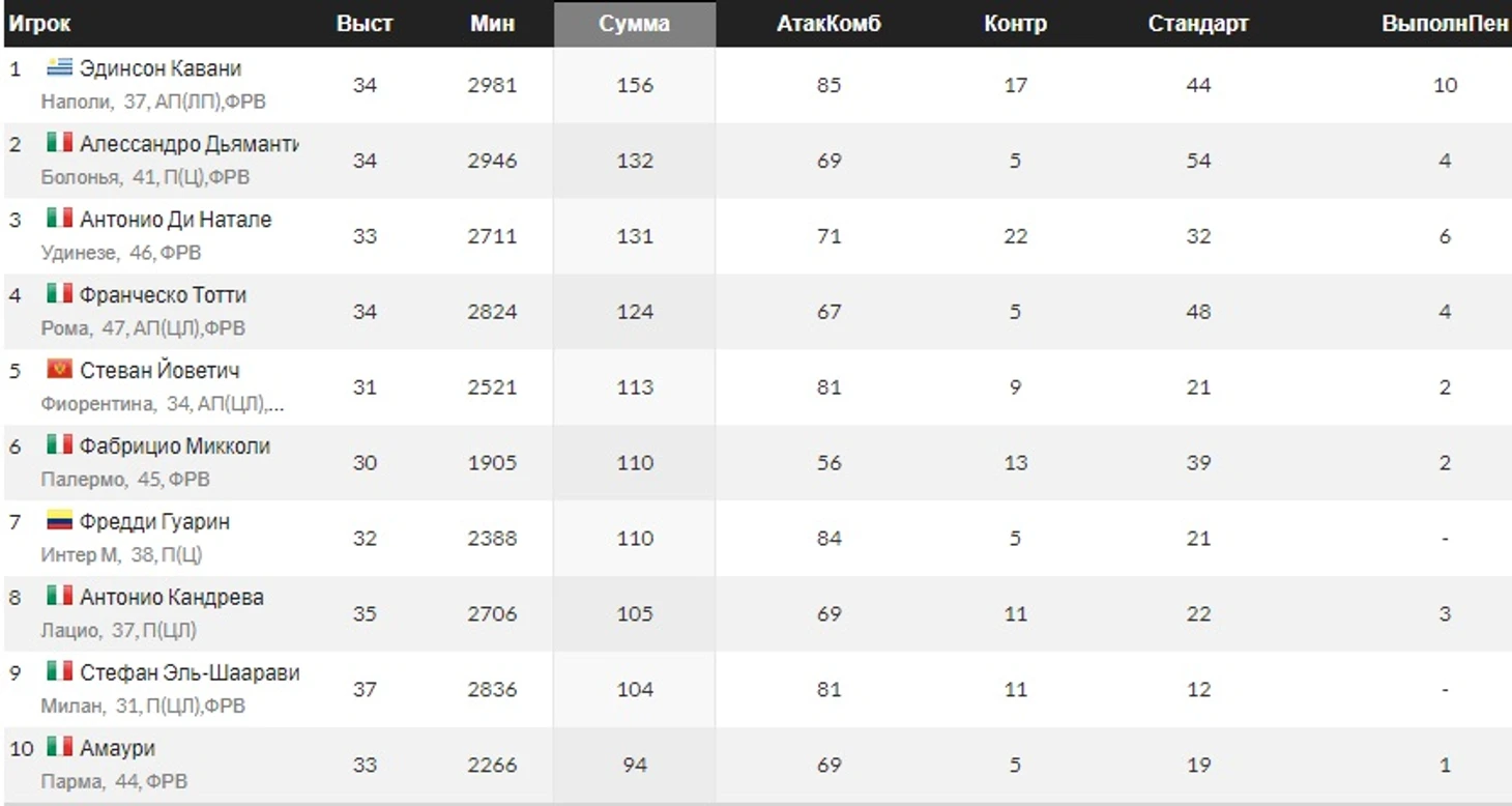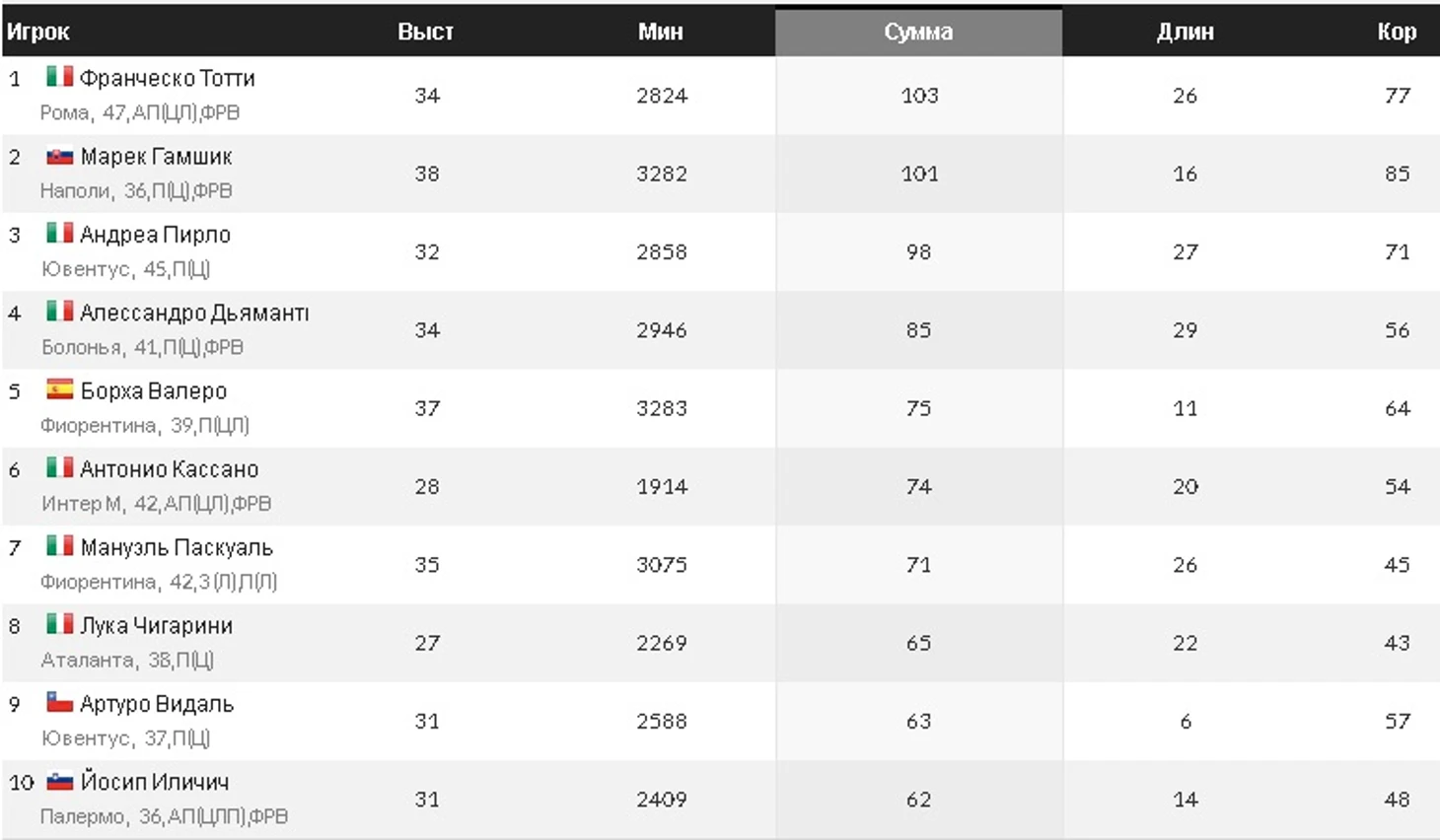 1. Сначала забил с пенальти, затем результативно навесил на Джиларджино. Волевая победа над «Пескарой» поднимает команду на одну позицию.