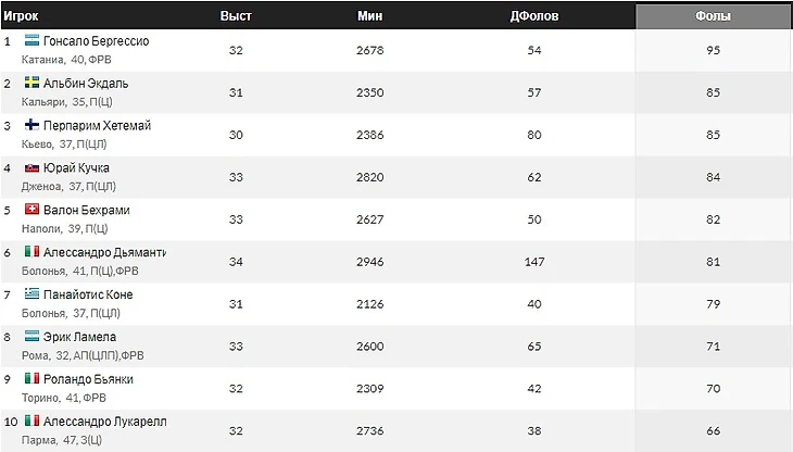 8. Помогает Соренсену открыть счет с «Пармой». Но соперник отобрал даже ничью, забив дважды. Падение на одну строчку.