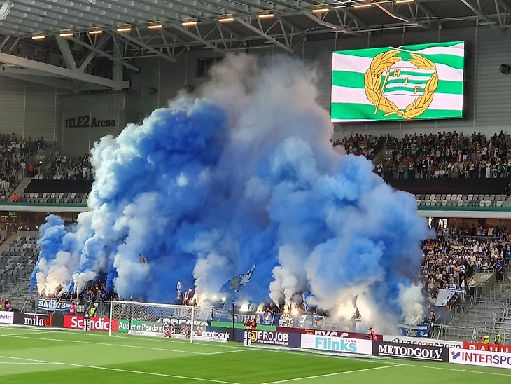 Трибуны на матче между командами «Хаммарбю» и «Гетеборг». Шведские болельщики, как обычно, полны энергии и азарта.