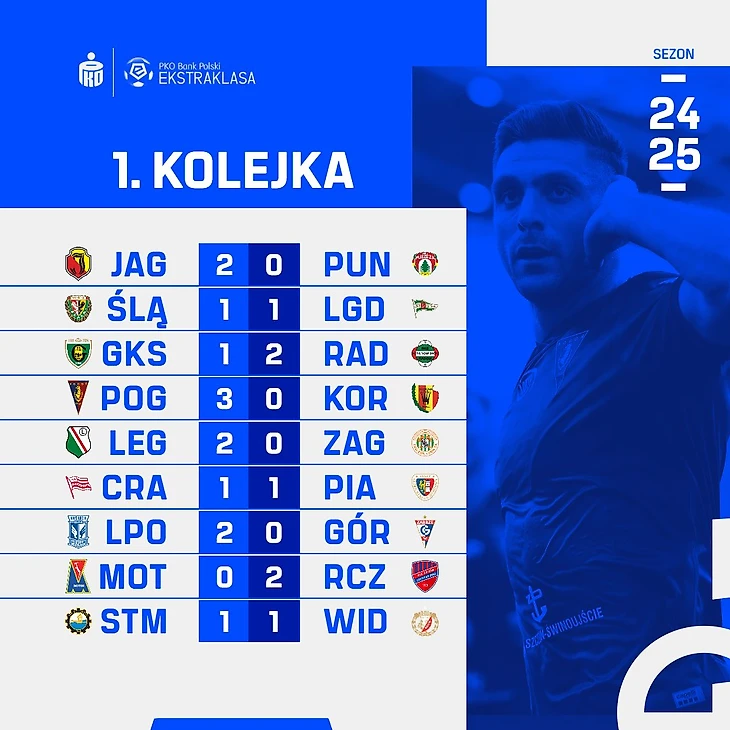 В пятницу стартовала польская Экстракласа. Лига уже приучила польских любителей футбола к серьезным неожиданностям, но первый тур не подарил ни одной сенсации.