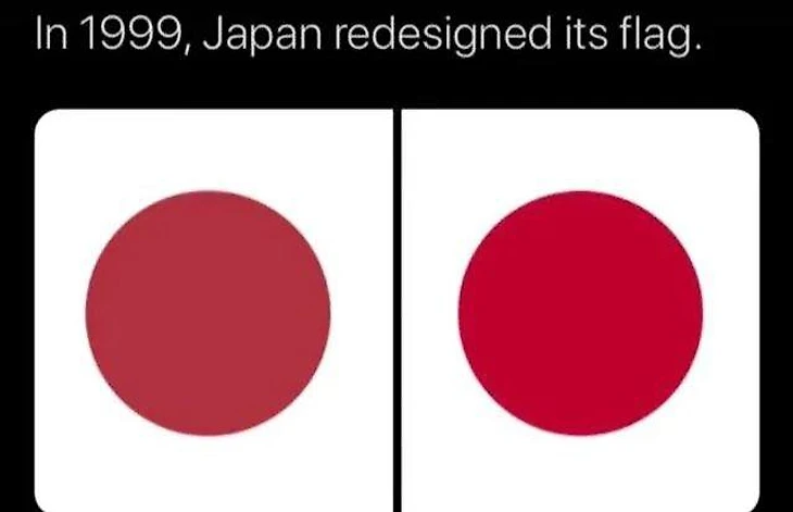4. Эти изменения сравнивают с обновлением флага Японии, где в 90-е просто изменилась насыщенность красного. И это вполне логичное сравнение. Масштаб совсем не сопоставим, но мысль верная».