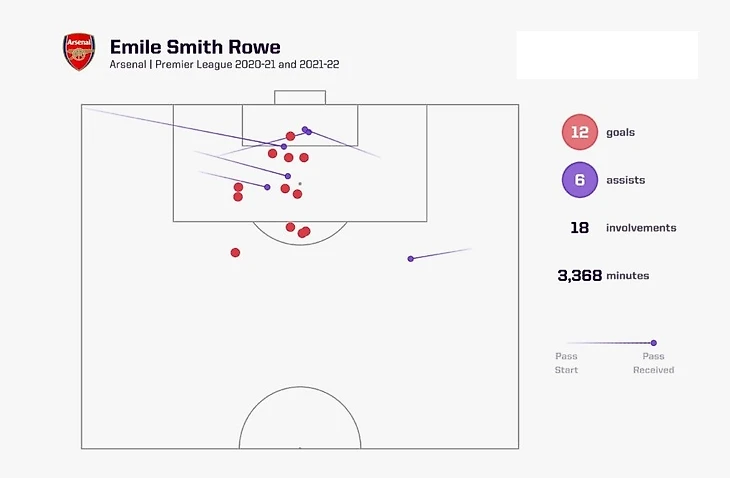 К концу 2021-2022 года в возрасте 21 года и 192 дней он забил 18 голов в 55 матчах в Премьер-лиге. Это не совсем ошеломляющие цифры, но они ставят его вровень с тем возрастом с такими же игроками, как Пол Скоулз (18 из 44 матчей) и Гарет Бэйл (18 из 76), и опережают таких звезд прошлого «Арсенала», как Аарон Рэмси (14 из 75) и Алекс Окслейд-Чемберлен (13 из 78), что свидетельствует о том фундаменте, который заложил Смит-Роу.