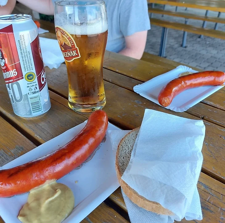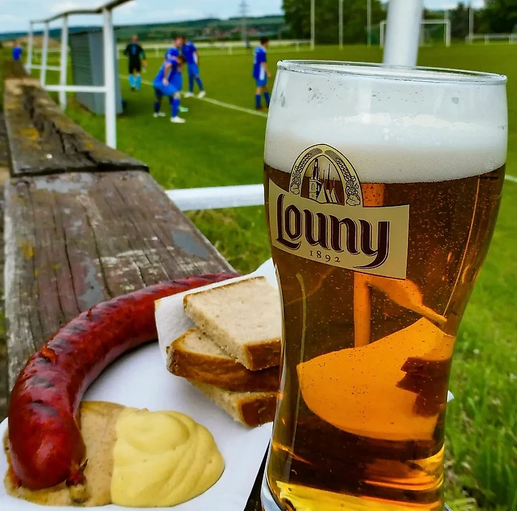 Конечно же, шикарного чешского пивасика. На стадионе продают светлое разливное низового брожения из соседнего города Лоуны с одноименным названием. Дрожжи при низовом брожении съедают все сахара, потому на вкус пиво становится нейтральным, легким.