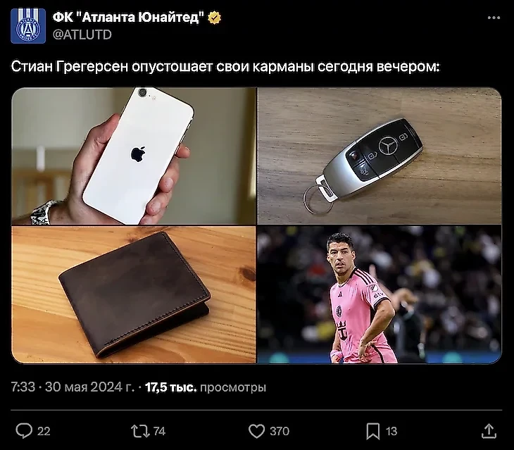 «Атланта» тогда вновь взялась за троллинг: посмеялись, как их норвежский защитник Стиан Грегерсен закрыл Луиса Суареса.