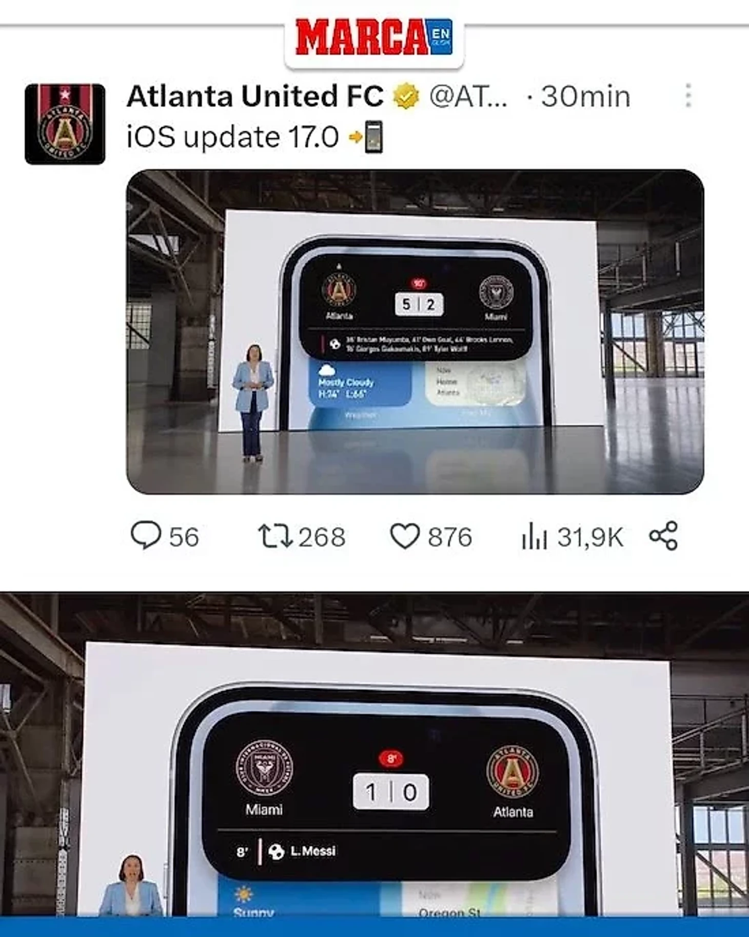 «Атланта» ответила и Apple, которая незадолго до этого матча на презентации новой версии iOS показывала скрин с голом Месси в ворота «Атланты» из июльской игры этих команд в Кубке лиг.