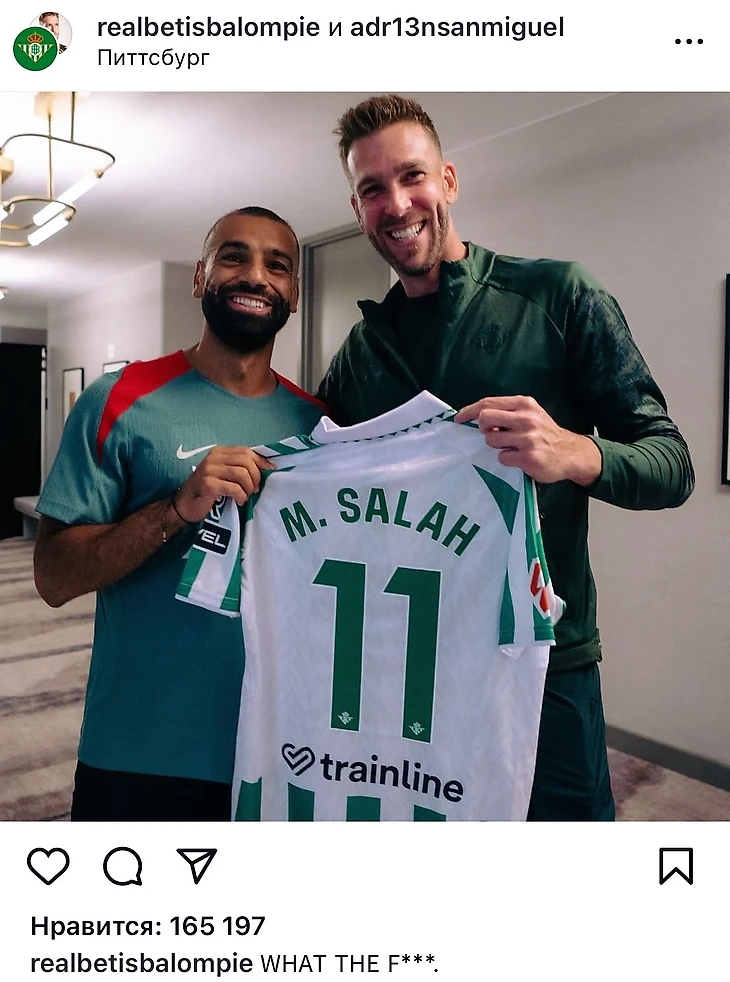 Трансфер Салаха Адриан тоже оформил. Официальный аккаунт «Бетиса» поделился фотографией с лаконичной подписью: «Что за черт?»