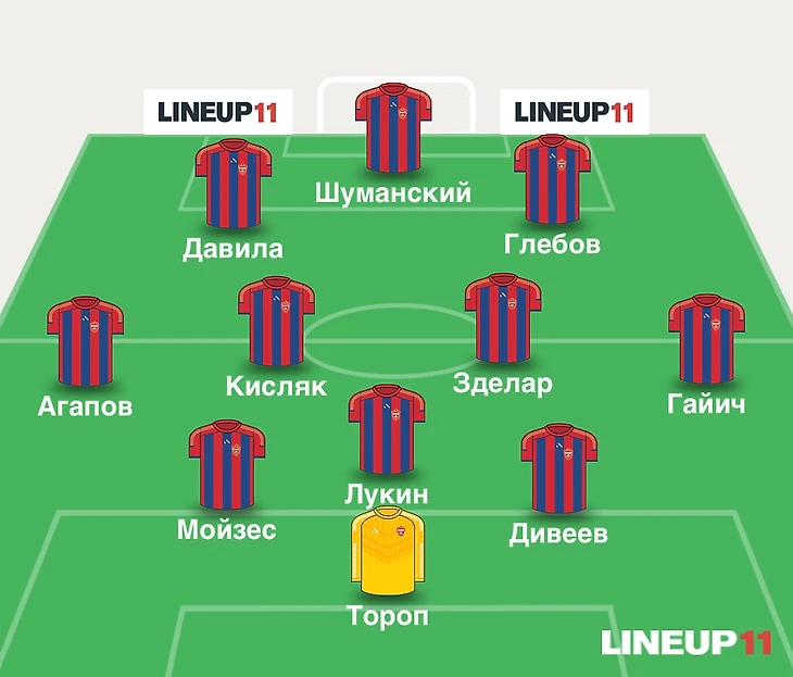 Левого латераля может сыграть Илья Агапов, не получивший игрового времени в первых двух турах чемпионата. Место правого латераля, думаю займёт Милан Гайич. Поставлю на появление в опорной зоне Матвея Кисляка и Саши Зделара.