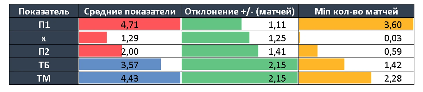Свою табличку немного модернизировал, так как не все ее понимали. Добавил отклонение +/- по матчам, это на сколько матчей в большую/меньшую сторону может быть сыграно матчей от средних показателей. Ну и добавил колонку с минимальным количеством матчей, которое может быть сыграно в туре, тут считается просто по формуле = из средних показателей вычитаю отклонение.