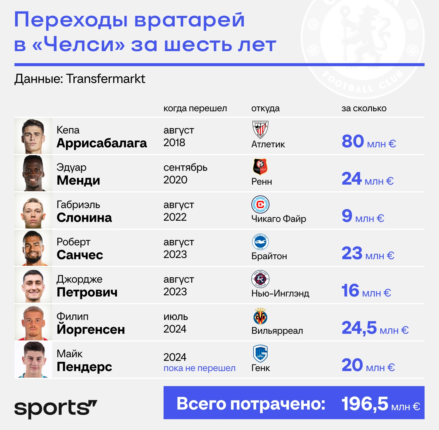 Сейчас в заявке «Челси» аж семь вратарей – Петрович, Кепа, Санчес, Йоргенсен, плюс Лукас Бергстрем (21 год), Маркус Беттинелли (32) и Эдди Бич (20). Формально Пендерса тоже туда внесут – будет восьмым. Но многие разъедутся по арендам.