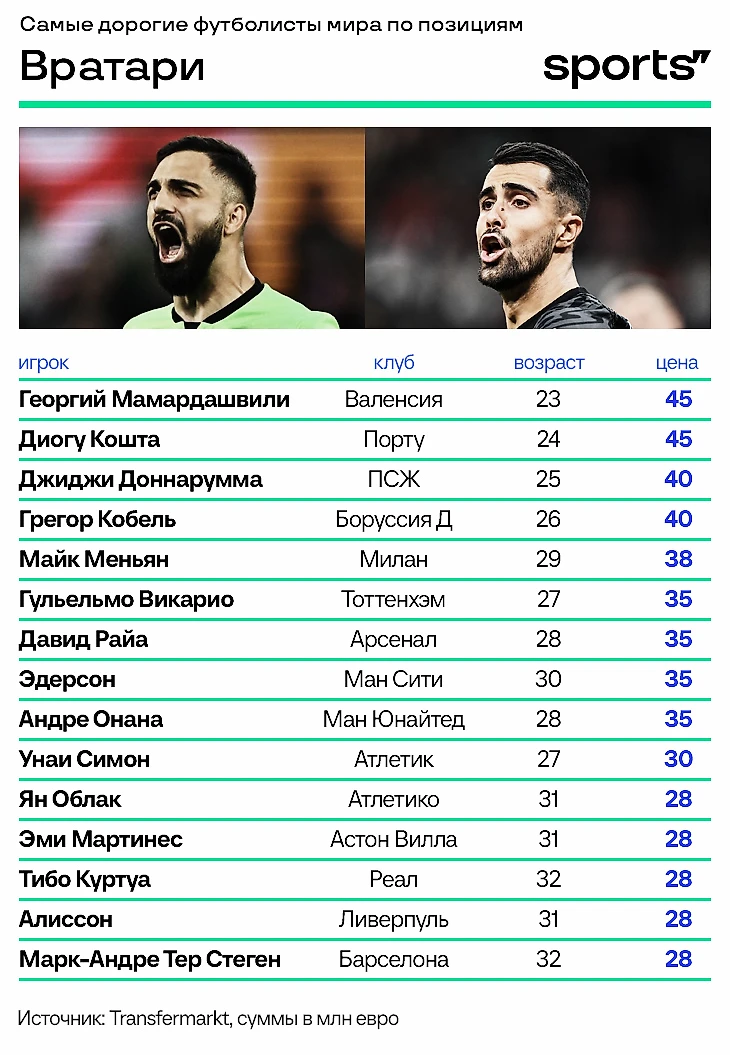До старта нового футбольного сезона осталось около двух недель – идеальный момент, чтобы зафиксировать трансферную стоимость игроков до того, как они начнут менять ее сэйвами, отборами, голами, ассистами и неожиданными провалами. Ниже – топ-15 самых дорогих футболистов для каждой позиции. Деление максимально простое – на вратарей, защитников, полузащитников и форвардов. За сезон почти все (кроме вратарей) действуют в нескольких ролях и на нескольких позициях, поэтому привязка к широкой категории хоть и неидеальный, но наиболее точный вариант.