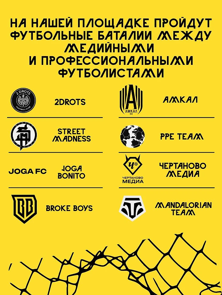 Скучные профики из медиалиги вряд ли покажут что-то интересное и шоу от них ждать точно не стоит, так что самом турнире советую отдельно последить за командой Street Madness. Эта банда с 2007 года занимается развитием уличного футбола в России: организует турниры по панне и футболу 3 на 3, проводит мастер-классы, выступления и тренировки. Участники команды, например Бизекс, Папен и Solarjoy также были амбассадорами таких брендов как Adidas, Nike и Coca-Cola. За уличный футбол они точно шарят, и, уверен, покажут пару классных финтов.