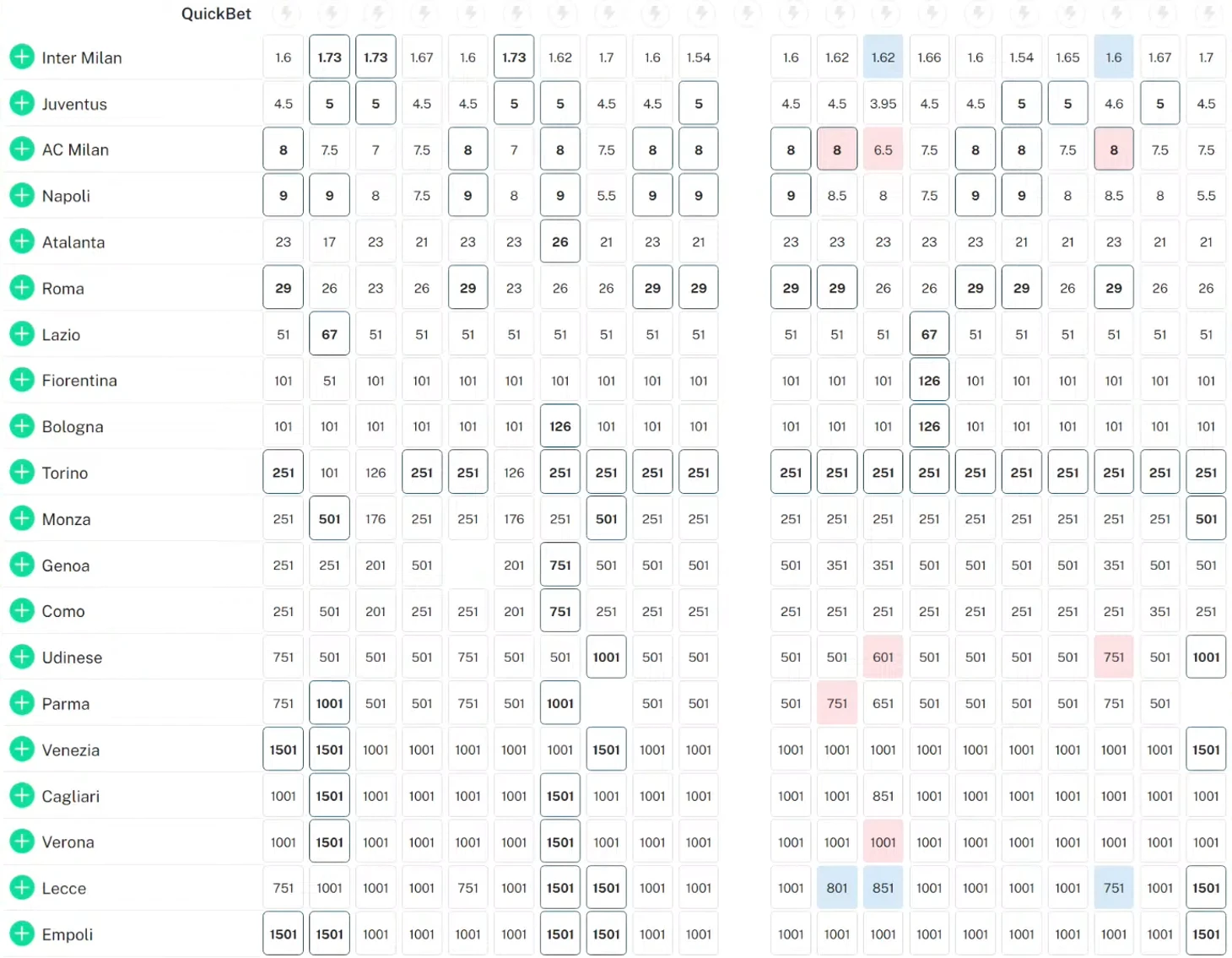 Большинство болельщиков «Юве» не согласились бы и с подобными прогнозами: «Мы полсезона навязывали борьбу за Скудетто с Аллегри у руля, теперь-то титул точно наш», я же вижу данные котировки большим авансом, основанном на итоговом третьем месте «бьянконери» в прошлом сезоне в купе с результатами Тьяго Мотты в «Болонье».