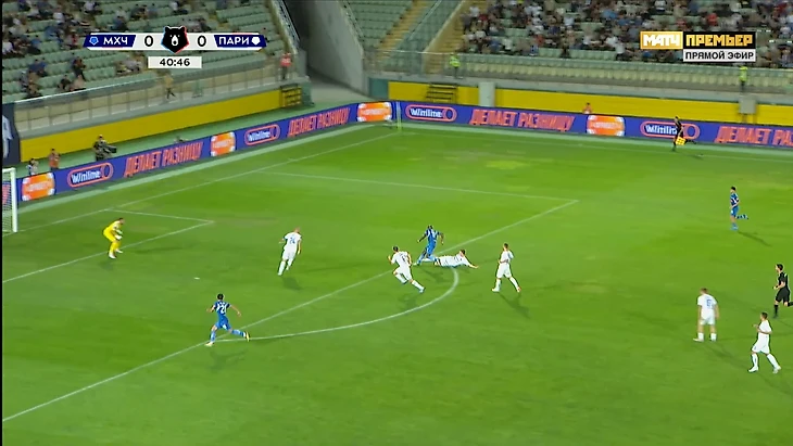 41-я минута – Касинтура подбежал к линии чужой штрафной и ударил, но сразу после в него влетел защитник «Пари НН» Никита Каккоев. Динамовец возмутился и получил в ответ желтую. ВАР – молчит.