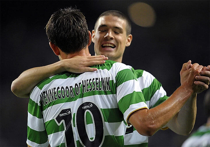 Забавно, что до этого голландский нападающий играл в ПСВ и «Селтике»: и там вся фамилия умещалась в одну строчку и почти без изгибов. Хотя в Шотландии тоже порой экспериментировали и печатали по дуге