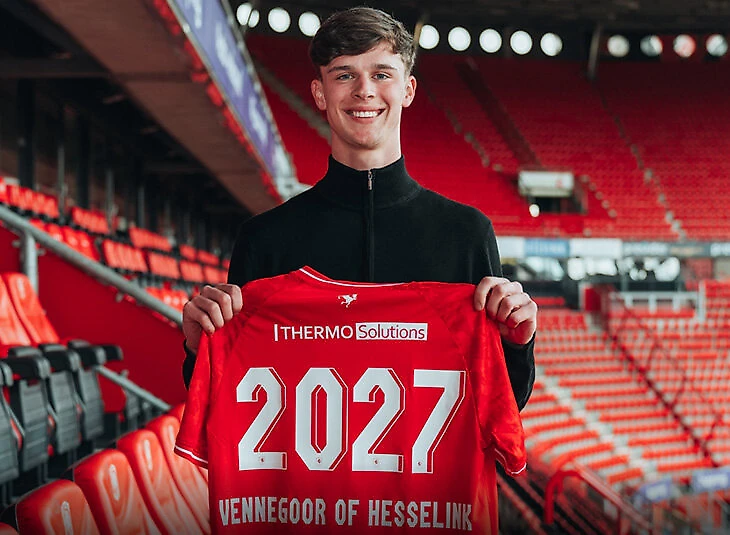 На последней фотографии в ряду с футболкой уже Лукас Веннегор оф Хесселинк – сын Яна. В 2024 году он подписал профессиональный контракт с «Твенте» из Энсхеде. И да, фамилия вошла полностью.