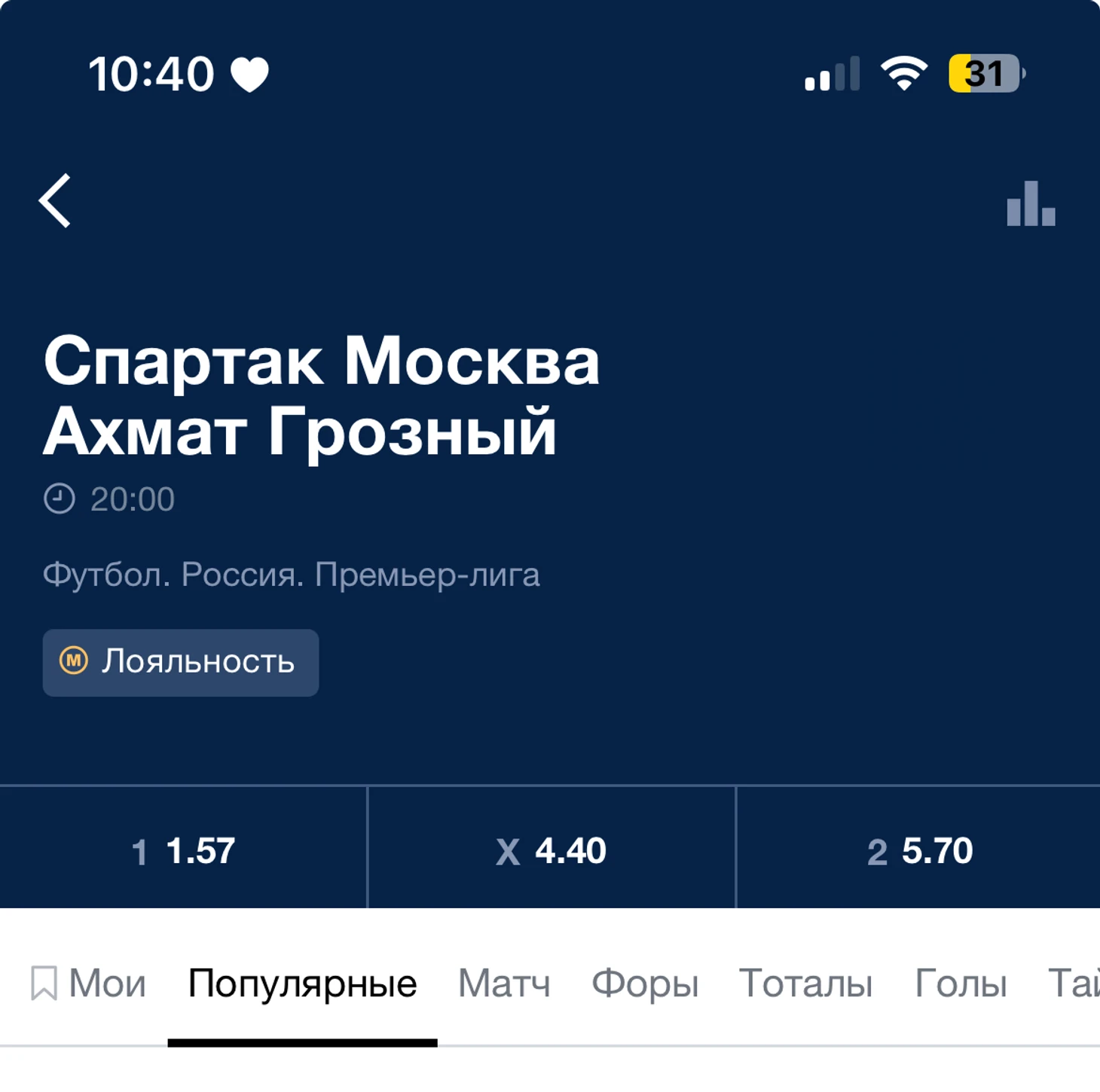 На матч Спартака и Ахмата стал падать резко кэф на победу гостей!