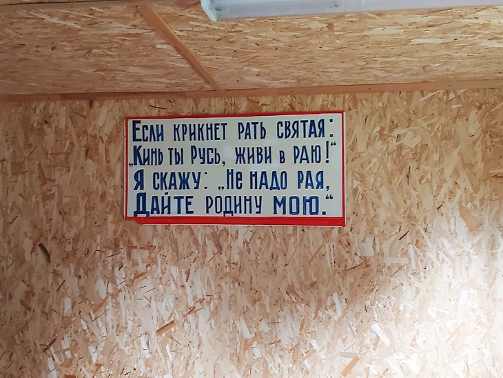 О большом футболе в селе напоминает и табличка внутри раздевалки. Например, когда игроки «Ливерпуля» выходят их подтрибунного помещения стадиона «Энфилд», они непременно касаются таблички с девизом команды «Ты никогда не будешь один». В Костино же придумали свой девиз, взятый из стихотворения Есенина.