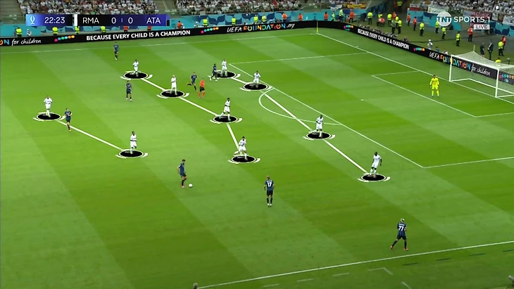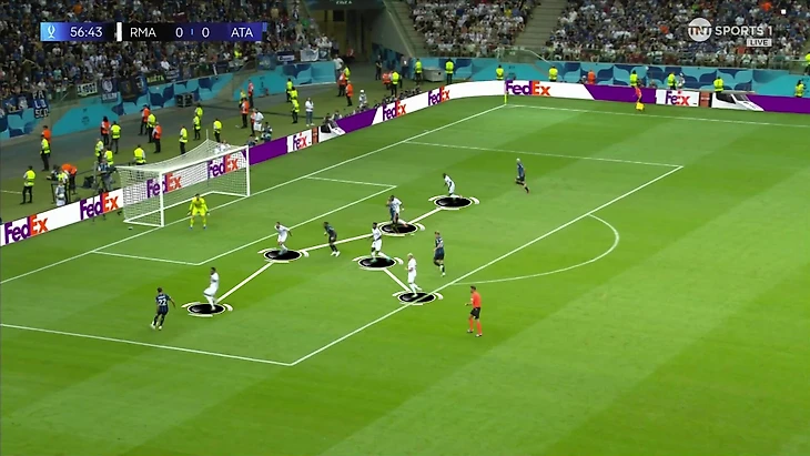 Концепция точно была интересной, но забить или создать регулярные шансы «Реал» не смог. Во-первых, прессинг «Аталанты» не разваливался: их часто пытаются путать, просто не так радикально. Команда умеет передавать оппонентов, сохраняя персональный базис.