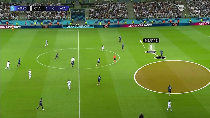 Такой замысел работал, когда соперник атаковал не очень быстро, а у «Реала» было время правильно расположиться. Когда же возможности перестроиться с 4-3-3 на 4-4-2 не было, огромная зона оставалась на Феде Вальверде. Для уругвайца такая ситуация не страшна – он самый объемный игрок в команде.