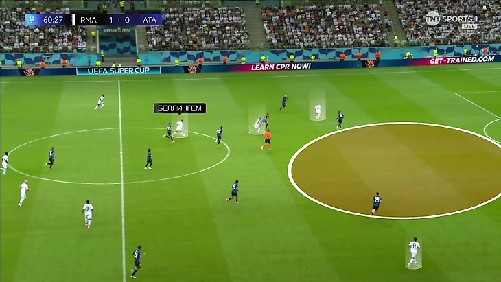 Во втором тайме более активную и постоянную роль во взаимодействиях играл Беллингем. Анчелотти минимизировал его участие в продвижении и обороне. Джуд стал постоянным участником атакующей группы – теперь квартета.