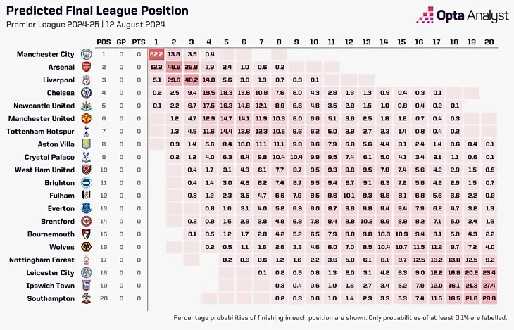 Уже завтра старт АПЛ. Самое время смотреть прогнозы Opta
