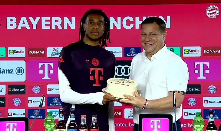 Перед началом первой пресс-конференции Олисе в «Баварии» клуб поздравил новичка с медалью. Макс Эберль вручил французу торт.