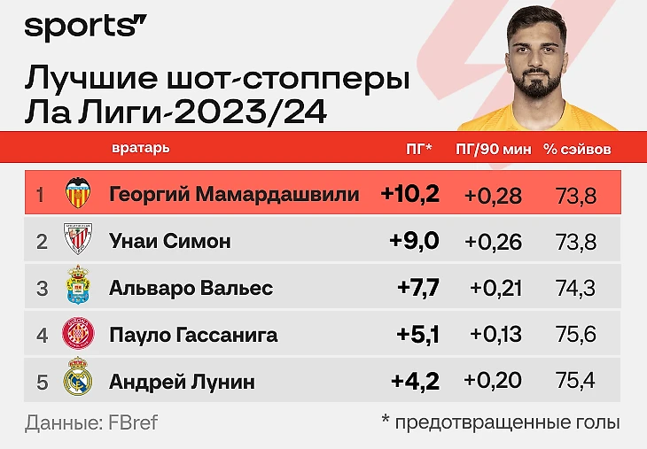 Георгий – главный вратарь Ла Лиги в прошлом сезоне по предотвращенным голам: спасал не просто часто, но и эффективно. «Валенсия» много позволяла, косячила в защите. Вратарь постоянно подчищал за партнерами.