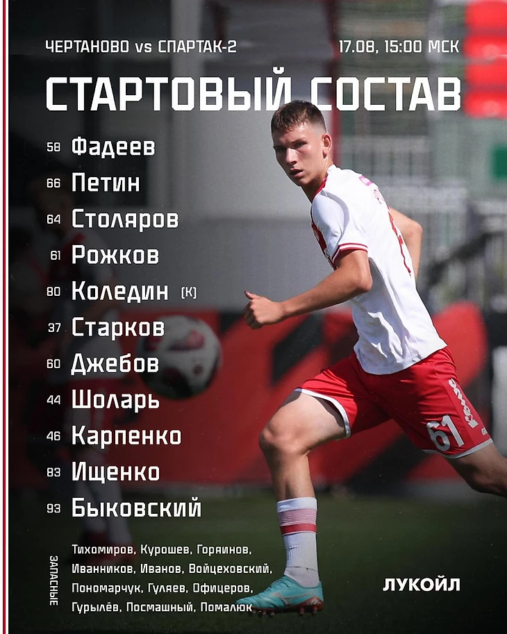 Следующий матч. В воскресенье, 25 августа, «Спартак-2» в Сокольниках примет «Динамо» из Санкт-Петербурга. Начало — в 12:00.