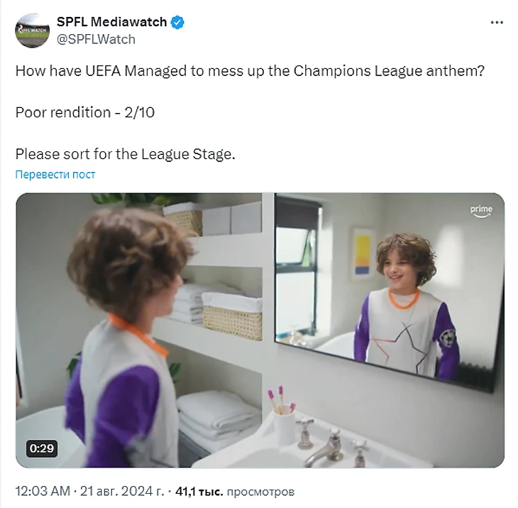 «Как УЕФА умудрился испортить даже гимн Лиги чемпионов. Плохая версия – 2/10. Исправьте к групповому этапу».