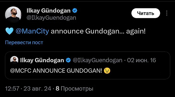 Но расставание вышло недолгим. И да, Гюндоган опять анонсировал сам себя!