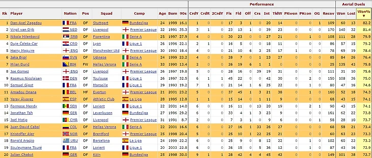 От «Фиорентины» частенько ждали прорыва в чемпионате. Связано это с двумя финалами Лиги Конференций и интересной игрой против более богатых коллективов. Таких достижений сложно добиться без сильной защиты, и Никола Миленкович – ключевая защитная часть той команды. Он провел семь сезонов в «Фиорентине», включая и прошлый. Никола вынослив и избегает серьезных травм – сыграл в 34 из 38 туров чемпионата, а пропущенные игры провел в запасе. Его рост достигает 195 см, и это помогает сербу выигрывать верховую борьбу. Ему не нужно много времени для нахождения борьбы: 4 раза поборолся за три минуты против «Интера» и дважды против «Салернтины» за 4 минуты. В первом случае почти все проиграл, а во втором все выиграл.