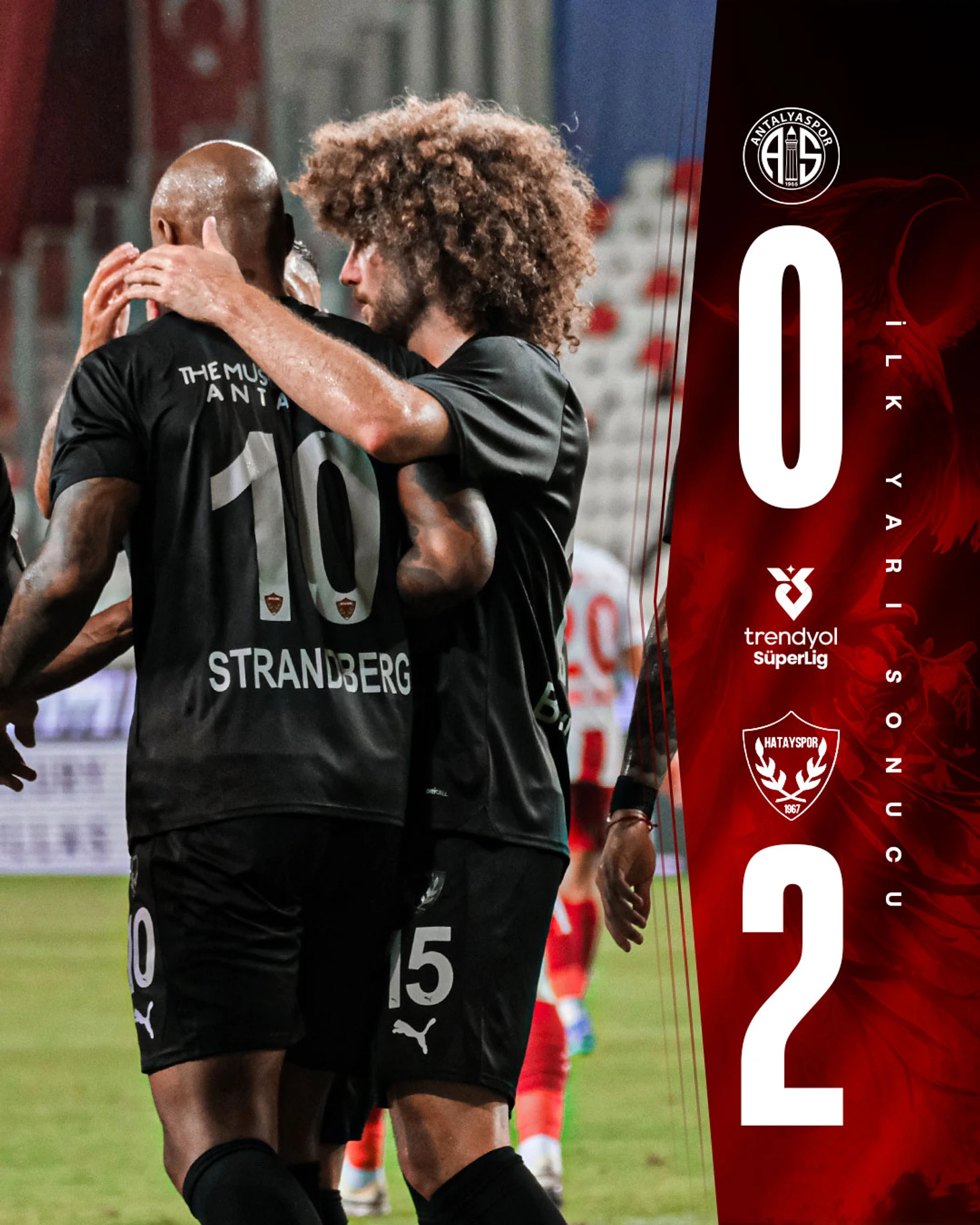 В первом акте на авансцену вышел швед Карлос Страндберг: дубль за 6-минутный отрезок времени, точный удар с пенальти, объятья с Жоэльсоном Фернандешем (у 21-летнего португальца 2+1 на старте Супер Лиги; пока это главное молодое открытие сезона в Турции). У «Антальяспора» был шанс вернуться в игру, забив в самой концовке первого тайма с 11-метровой отметки, но Рамзи Сафури точен не был.