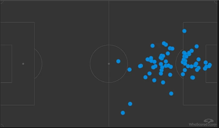 Красивая карта передач. Точки – места, откуда пасовал Ману.