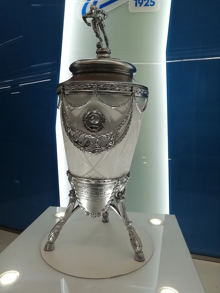 Полуметровое хрустальное яйцо острым концом вниз, в серебряной оправе, вдетое в кольцо изящного треножника, увенчанное сверху фигуркой футболиста, покоится на столике, установленном перед центральной ложей Северной трибуны стадиона «Динамо». Сверкают на солнце затейливые грани хрусталя.