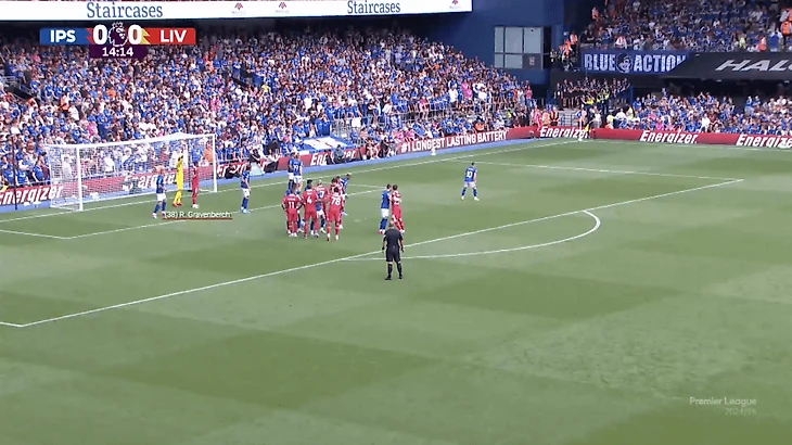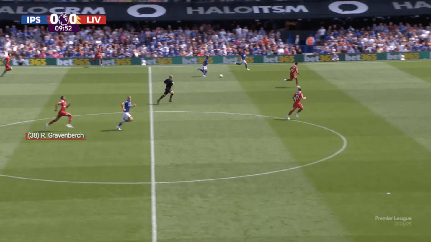 Против «Ипсвича» Гравенберха попросили встать у вратаря, и он выполнял это указание во время каждого розыгрыша. Это оставляло «Ливерпуль» в меньшинстве, когда «Ипсвич» контратаковал, и в первом тайме вышедший в АПЛ клуб был очень рад, особенно после того, как выиграл первый контакт при пяти из девяти угловых.