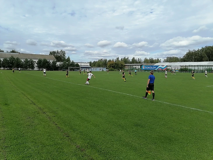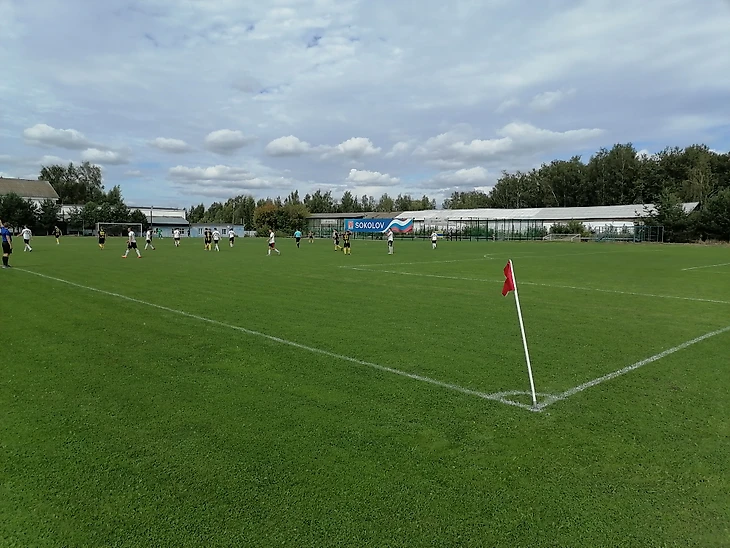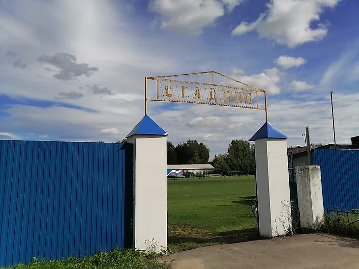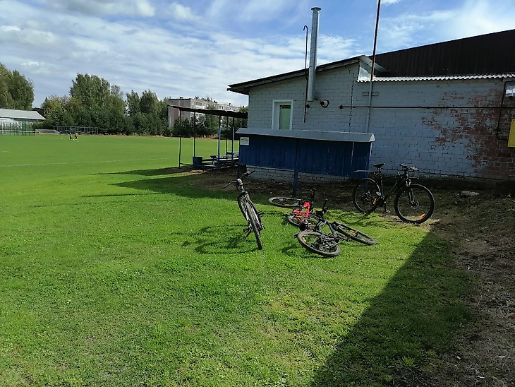 На стадионе одна трибуна в три ряда лавок, поле ровное без особых кочек и проплешин, натуральный газон⛳.