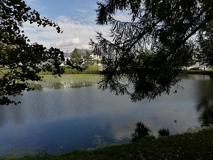 Далее за храмом располагается уютный сквер с прудом. Поселок, во всяком его центр, оставил приятные впечатления.