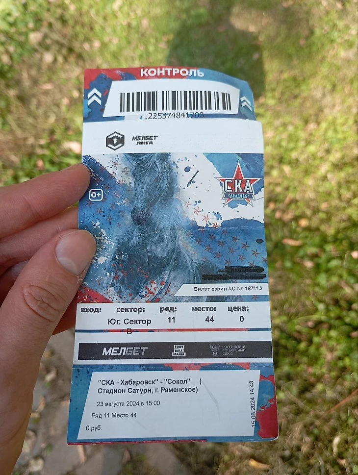 Билеты стоят 0 рублей, на них прямо и написано, что цена – 0. Логика понятна: из Хабаровска вряд ли кто поедет на домашнюю игру в Подмосковье. Хотя в предыдущем туре один дальневосточный фанат добрался, но так получилось благодаря параллельной командировке в Москву.